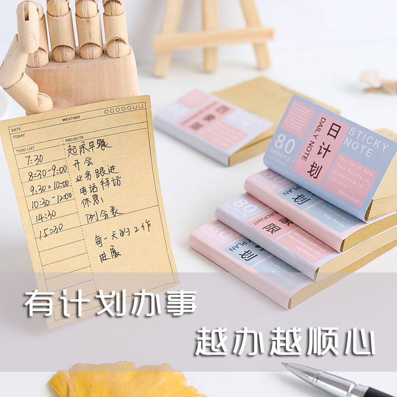 Kraft paper notice stickers Post-it notes Daily plan Pastable time management Improve efficiency Sticky notes Paper Week plan Day plan list Four-quadrant punch-in notepad Portable small book