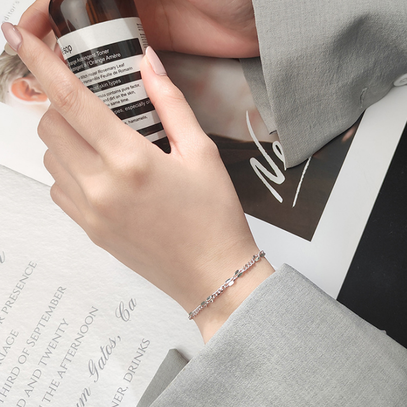 Cat Jellyfish S925 Pure Silver Korean Version Temperament Geometric Woven Chain Bracelet Handmade Woman Minimalist Fashion 100 Hitch Corrugated Hand Decoration