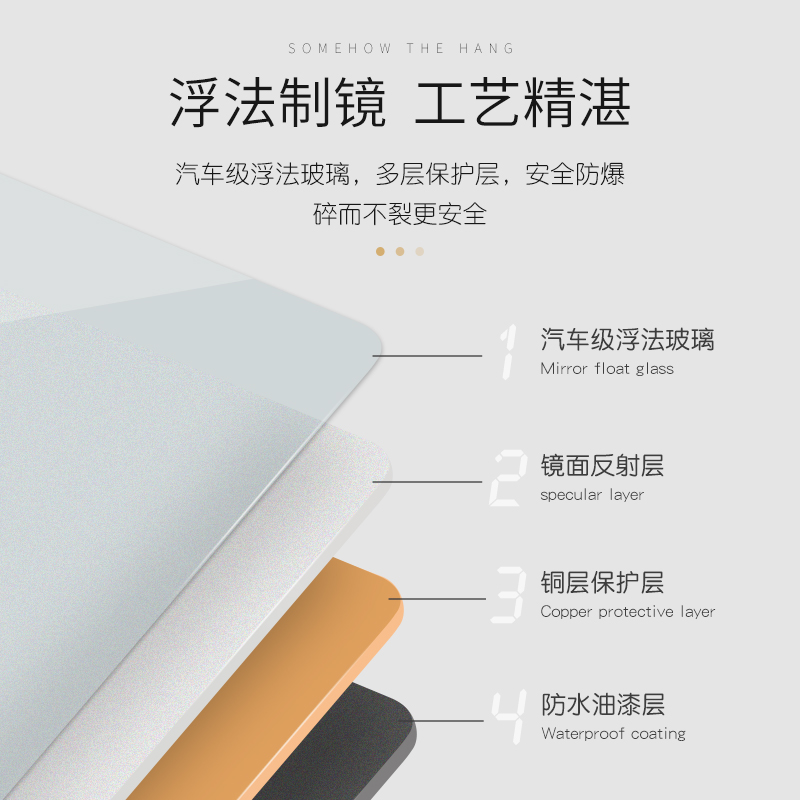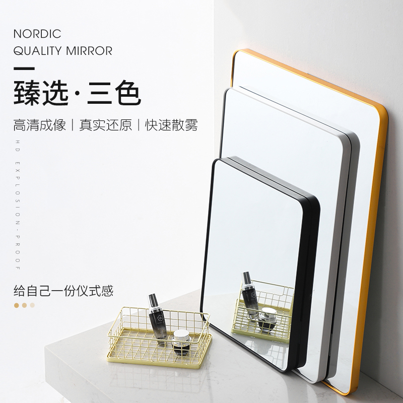 German Square Mirror Bathroom Mirror Perforated dressing room hanging wall Mirror Makeup Mirror Toilet Wall-mounted Glass with shelf