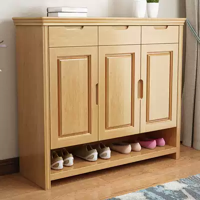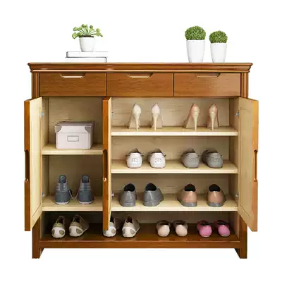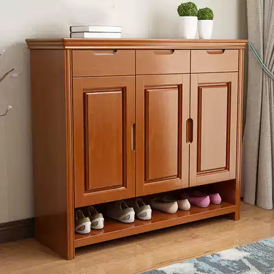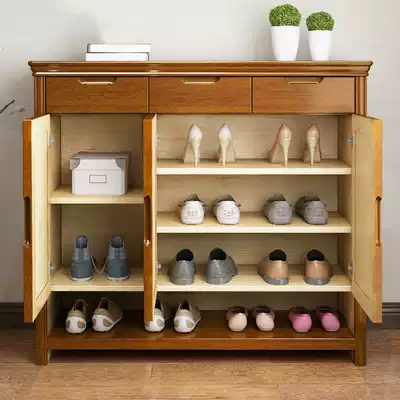 Modern Chinese solid wood shoe cabinet multi-layer simple shoe rack door hall multi-function economical door storage porch cabinet