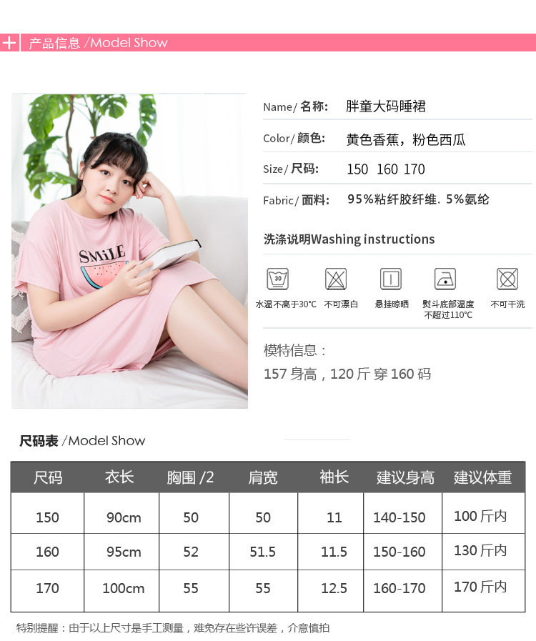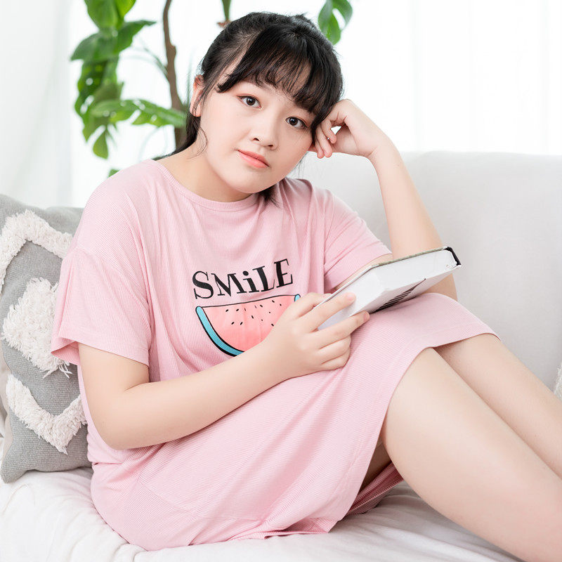Fat girl's nightdress summer girl's pajamas thin section student plus fat plus size short-sleeved home clothes loose 170 catties