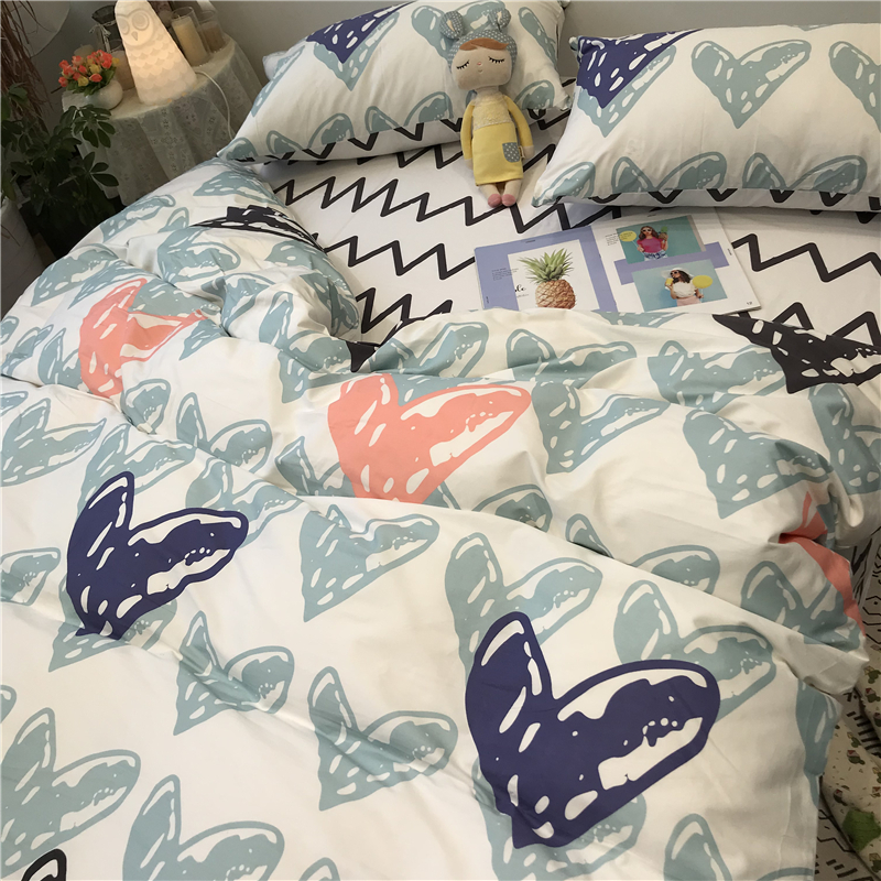 Heart-pounding ins small fresh three-piece set of cotton pure cotton simple wind love 1 5m quilt cover four-piece bed set