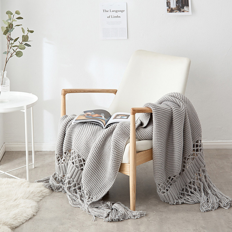 Tassel blanket Nordic knitted blanket office sofa bed end blanket photo props model room decorative blanket