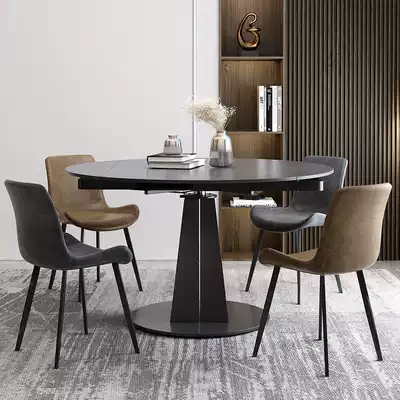 Italian rock plate dining table and chair combination Small apartment multi-function rotating retractable round table dining table Household simple