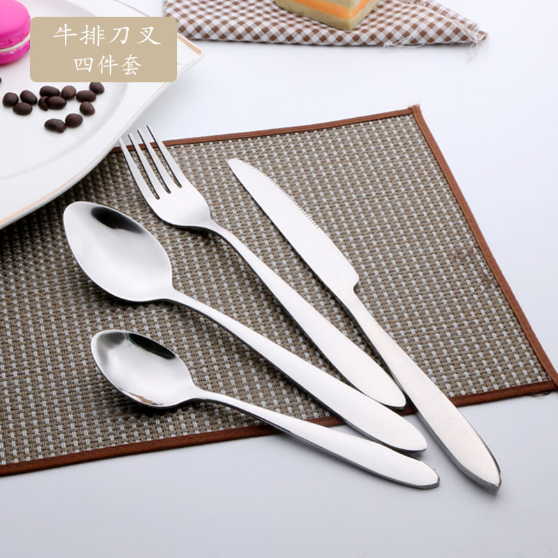 Thickened 304 non-embroidered steel knife and fork set Non-embroidered steel steak knife and fork 4-piece Western tableware gift box set
