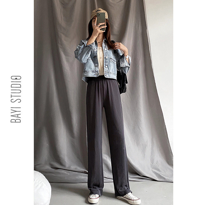 Cupro silk wide-leg pants women's summer 2020 thin high-waisted straight-tube loose drape mask mopping ice silk trousers