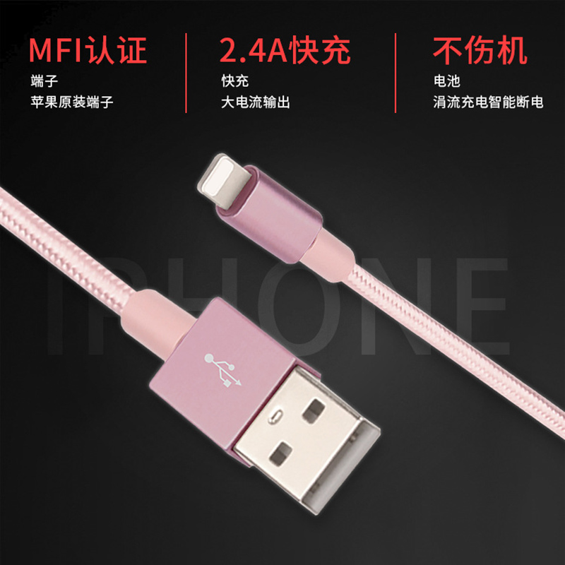 Black ● M F I certification ● U S B conventional interface silver color ● M F I certification ● U S B conventional interface rose gold ● M F I certification ● U S B conventional interface fishing net braided wire ● M F I certification