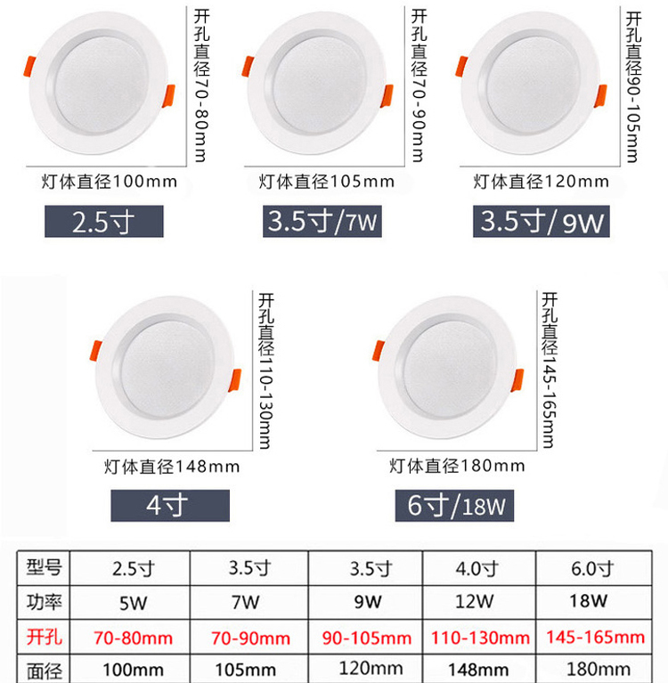 3 5 inch 9W White White opening 9-10 5cm