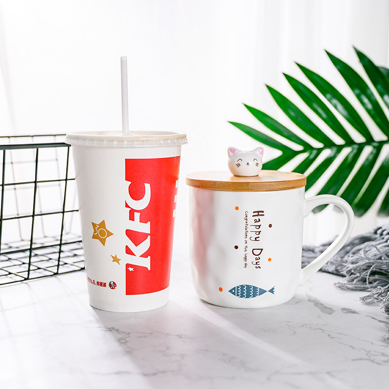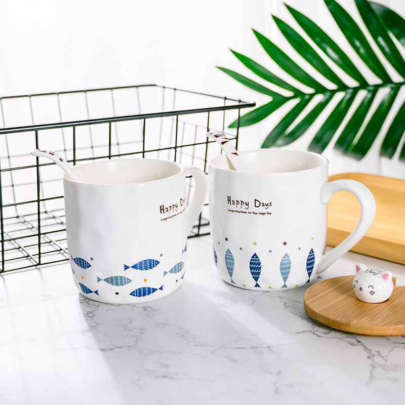 Becar Plume Creativity Mark Cup Cartoon Home Cup Ceramic Cup With Lid Spoon Water Cup Breakfast Coffee Cup Cute