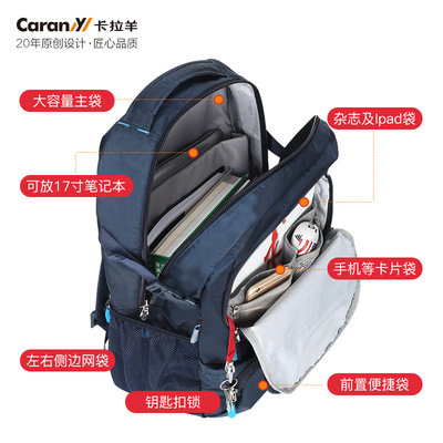 Kara sheep leisure sports large-capacity backpack men and women travel bag backpack Korean version of the trendy middle school students wear-resistant schoolbag