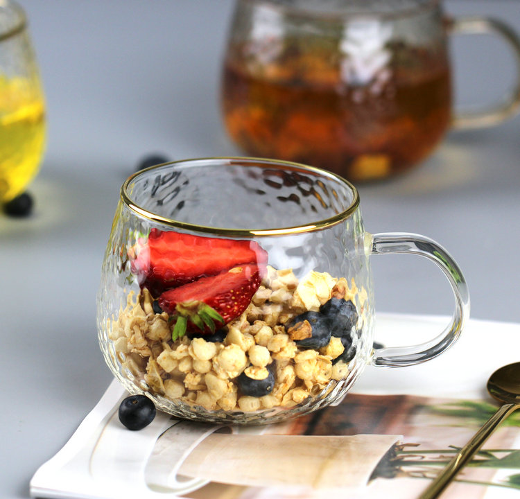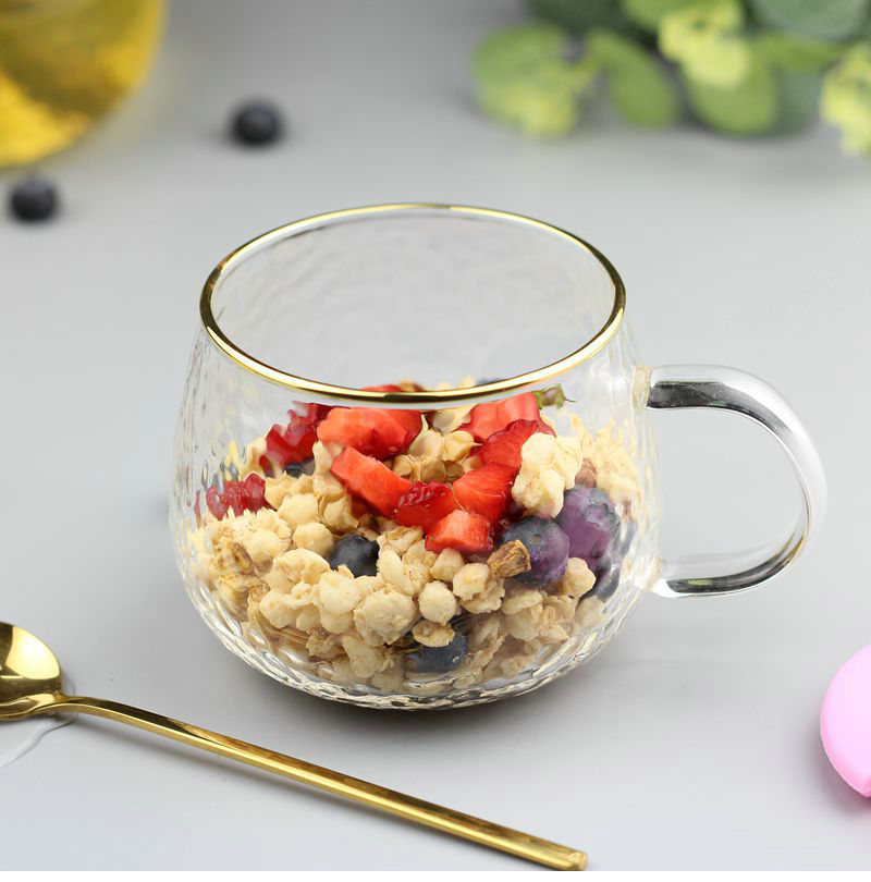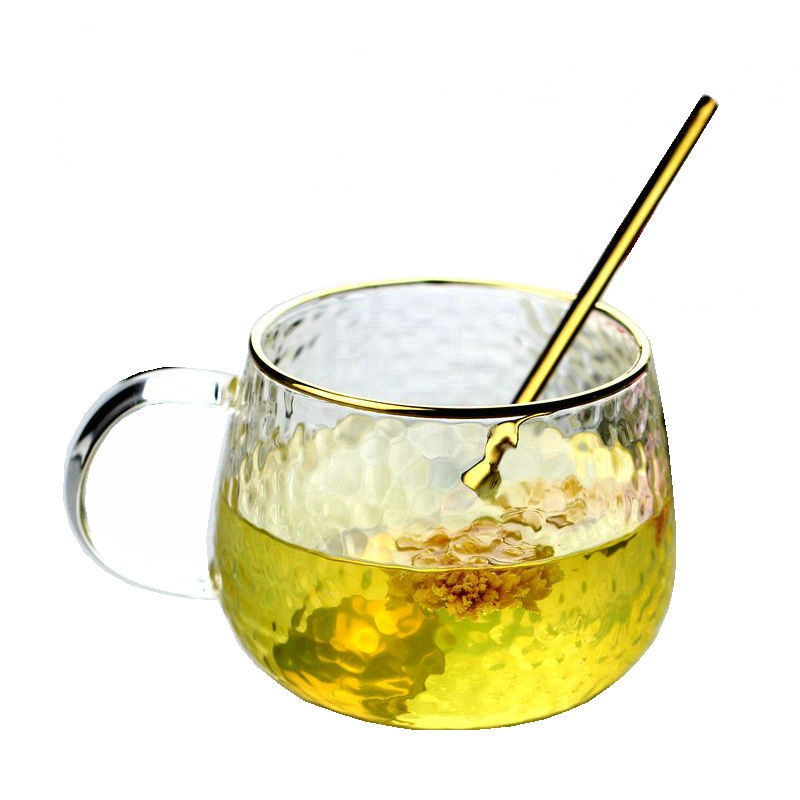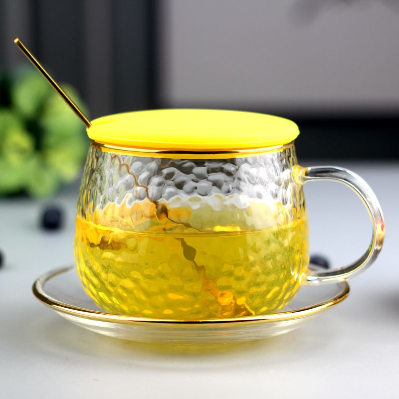 Gift shipping insurance return worry-free is light and thin heat-resistant glass to accept light and thin and then pat 400 ml yellow handle 400 ml gold edge 400 ml yellow handle gold spoon 400
