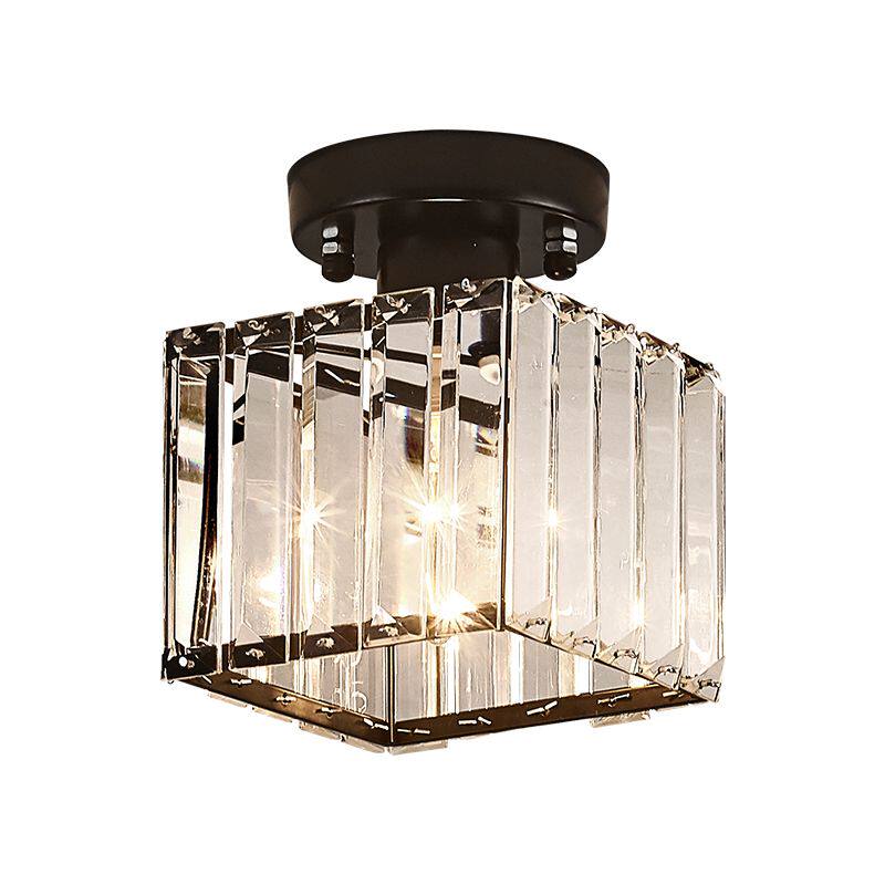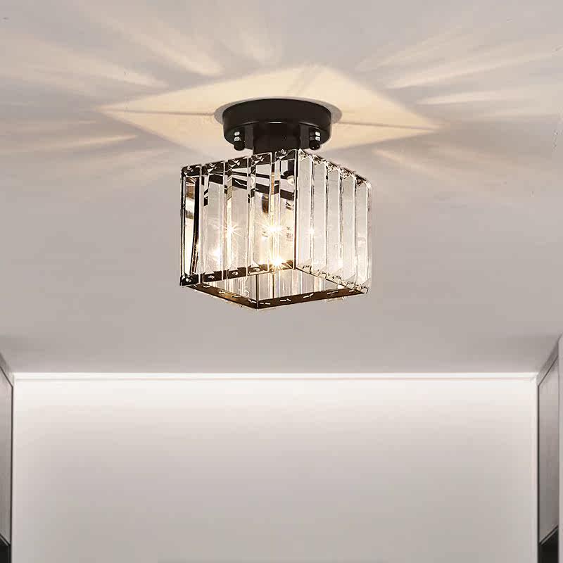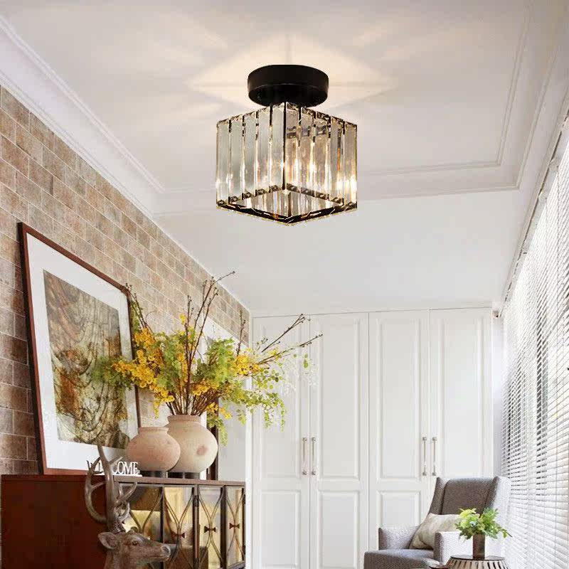 Wrought iron crystal walkway ceiling lamp porch geometric creative retro corridor entry balcony black American ceiling lamp