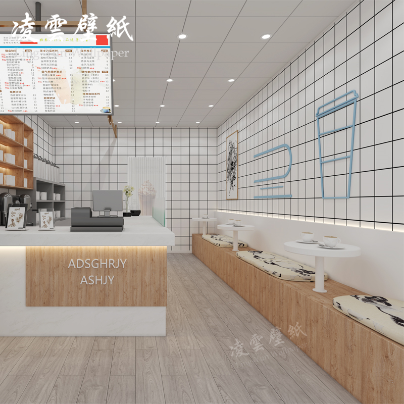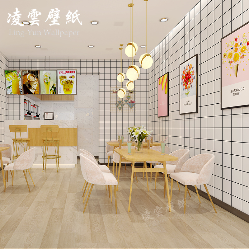 Net Red Ins Black & White Plaid Wall Paper Waterproof Milk Tea Catering Restaurant Dining Room Commercial Background Wall Shop Furnishing Wallpaper