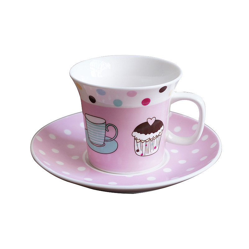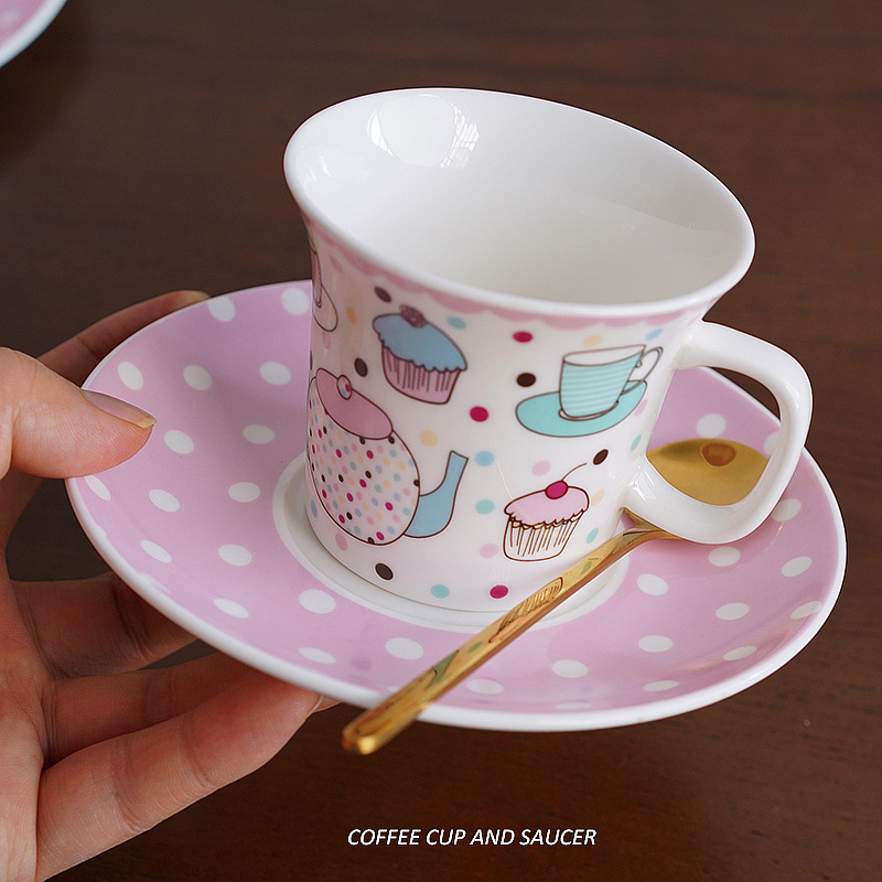Outlet Korea Ins Cute Illustrations Style Ceramic Next Afternoon Tea Coffee Cup Saucer Pink Black Tea Milk Tea Cup-Taobao