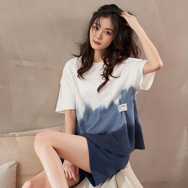 Ladies' pajamas summer pure cotton short sleeve seven shorts two pieces of 2023 new large - scale summer home clothes
