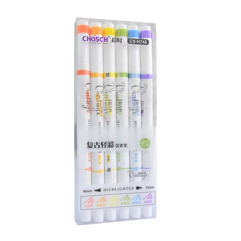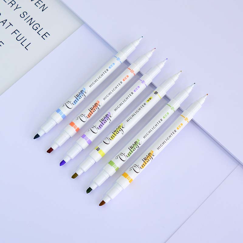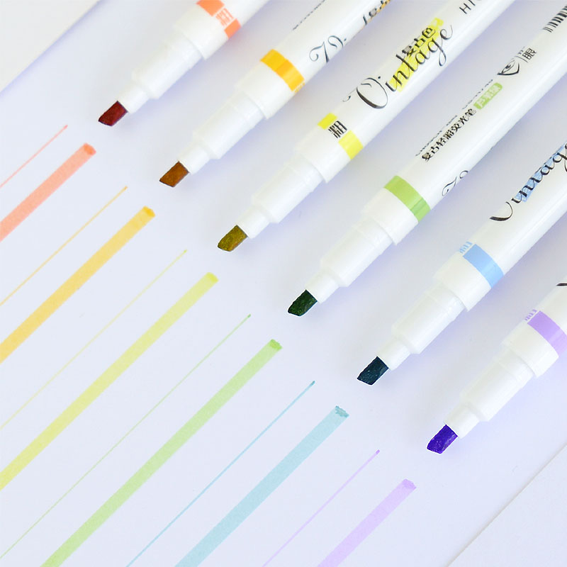 Retro fluorescent marker pen color series students with double-headed note pen suit Colour rough drawing key hand account pen