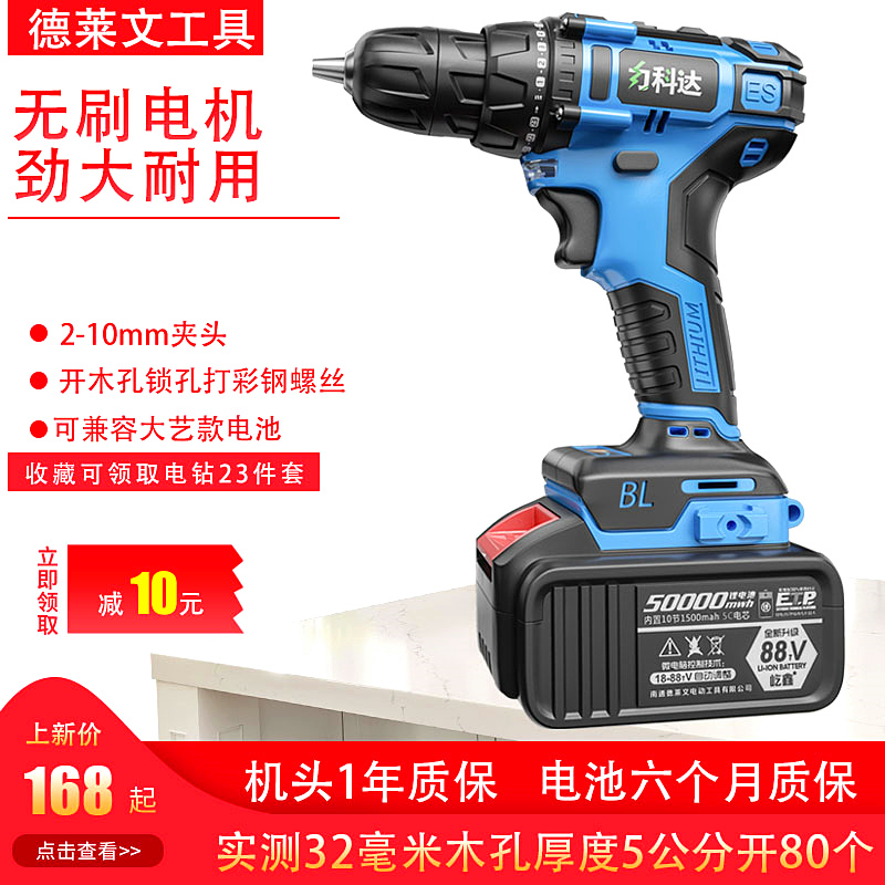 10mm brushless lithium electric drill handpiece without battery 10mm brushless lithium electric drill handpiece 88tV battery 1 block 10mm brushless lithium electric drill handpiece 98tV battery 1 block 10mm None