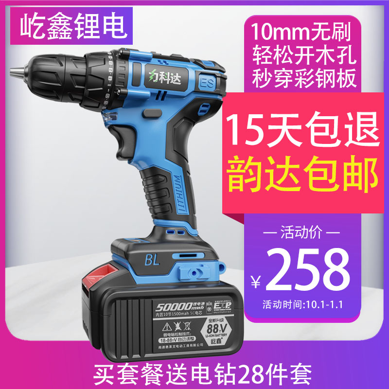 Brushless electric drill transfer rechargeable high-power lithium battery industrial grade open wood hole electric drill motion screwdriver color steel