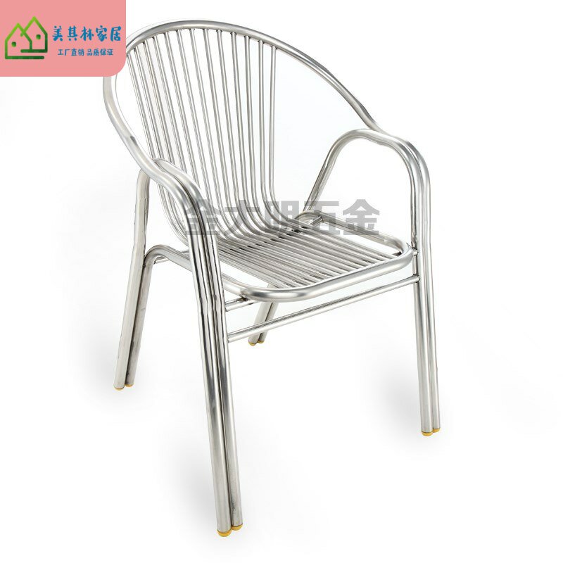 Stainless Steel Chair Backrest Single home Outdoor Dining Room Aluminum Alloy Dining Chair Balcony Armrest Casual Stool Brief