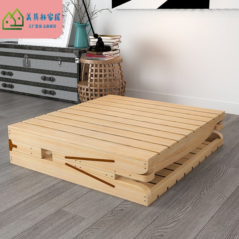 Single bed for lunch break fold 1 2m short bed 0 6 0 8m 8m tatami simple bed frame solid wood bed pine wood rental room