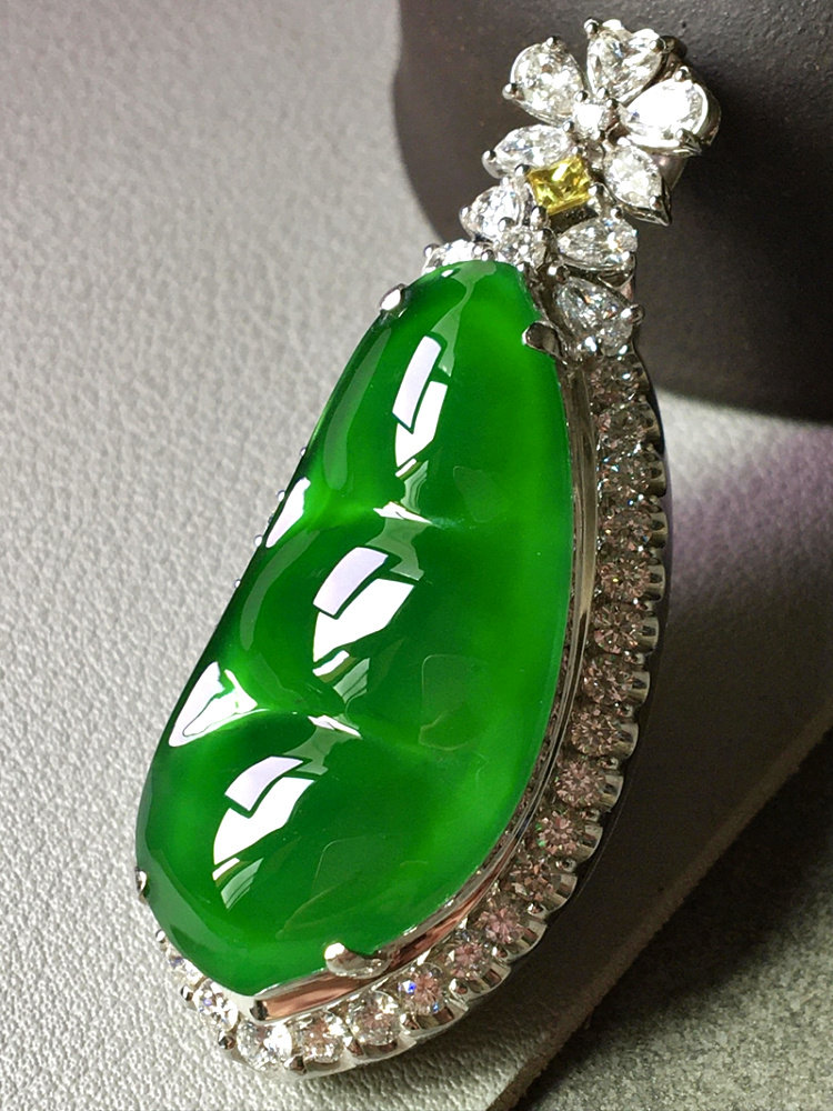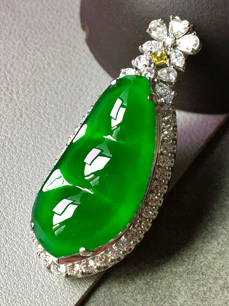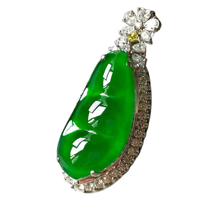 Natural Emerald A Fudou 18K Gold Inlaid Burmese Ice Seed Yang Green Jade Pendant Kidney Bean with Certificate