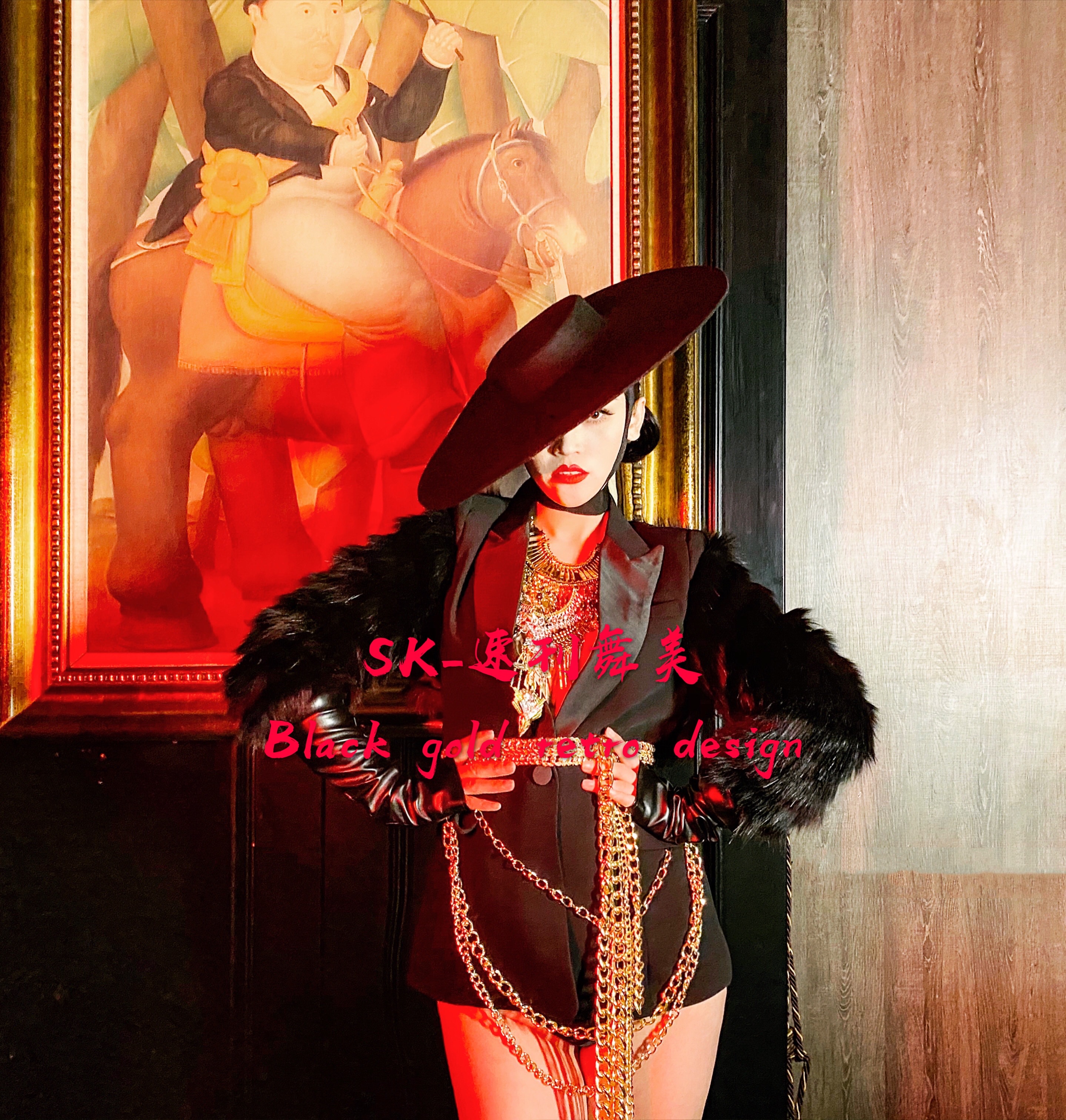 SK - Dance Nightclub Bar Gogo Show Retro Hat Black Series Sushion Show Customized Clothing