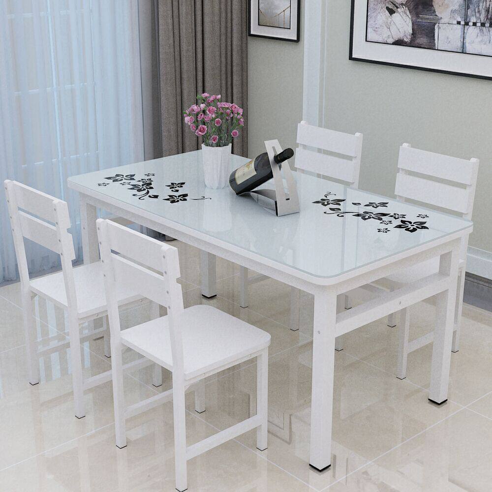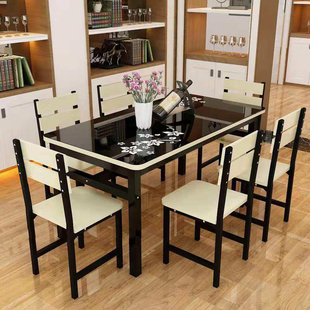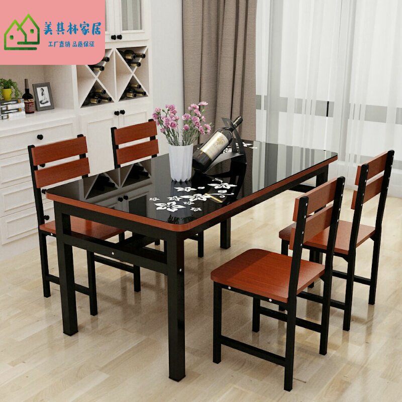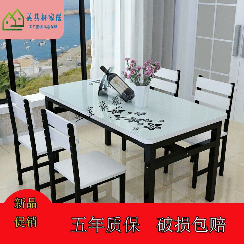 Simple small dining table chair alone glass table surface steel chemical home small family dining room rental house table 2 6 4 people