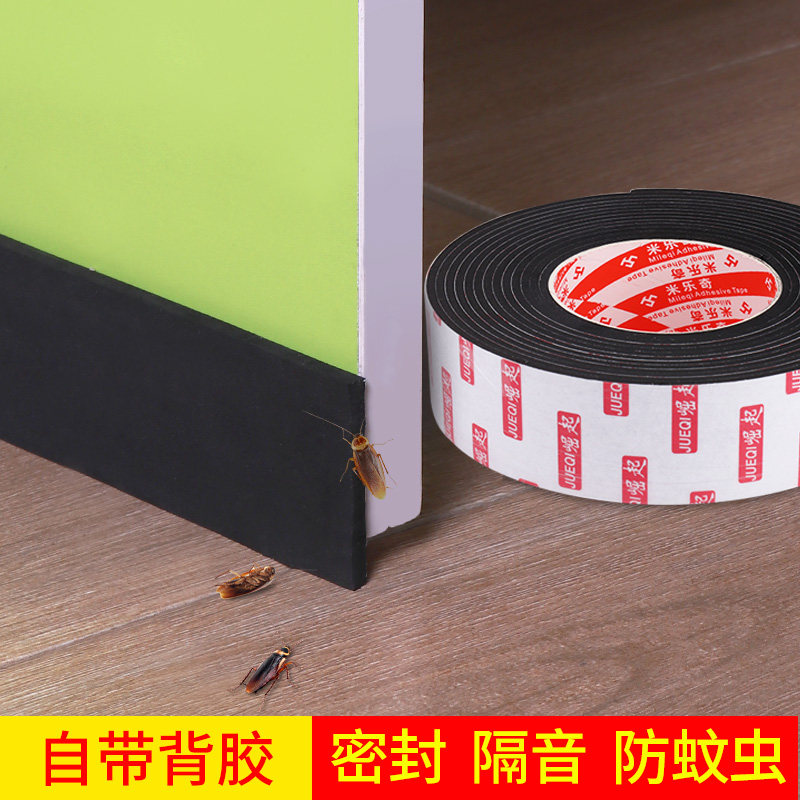 Black foam single-sided adhesive door and window anti-collision seal soundproof foam shockproof buffer EVA sponge strip single-sided tape