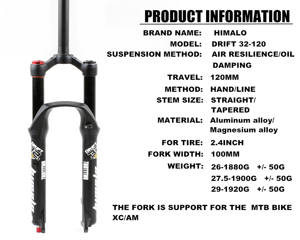 HIMALO MOUNTAIN BIKE SHOCK air FORK 26 27 5 29 INCH 160MM STROKE QUICK release damping