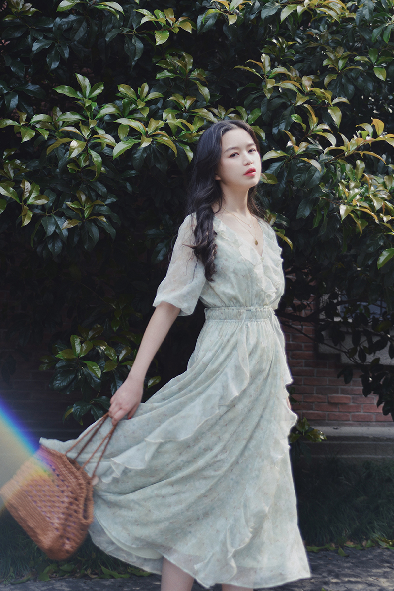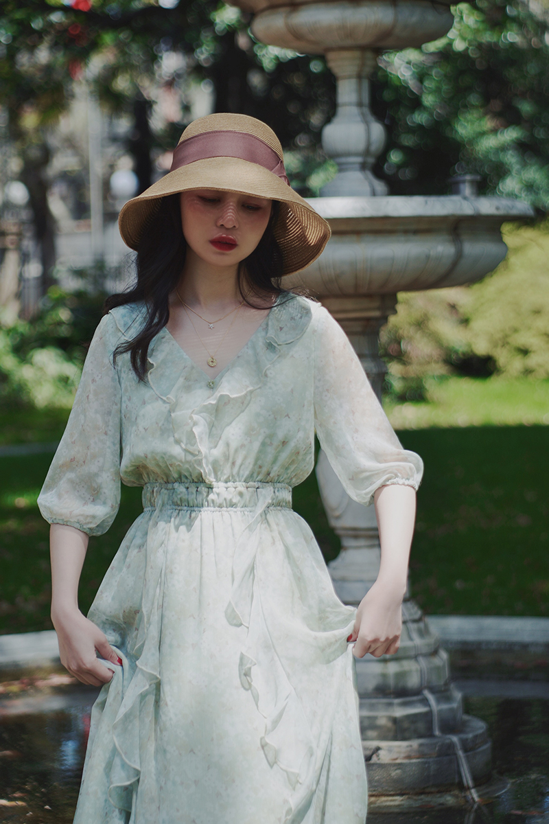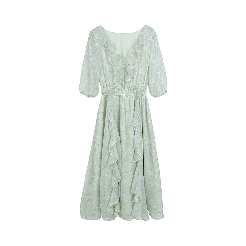 "Grass's Orioles" belongs to the summertime Water Green Senfairy Skirt Printed Snow-spinning Ocean Dress