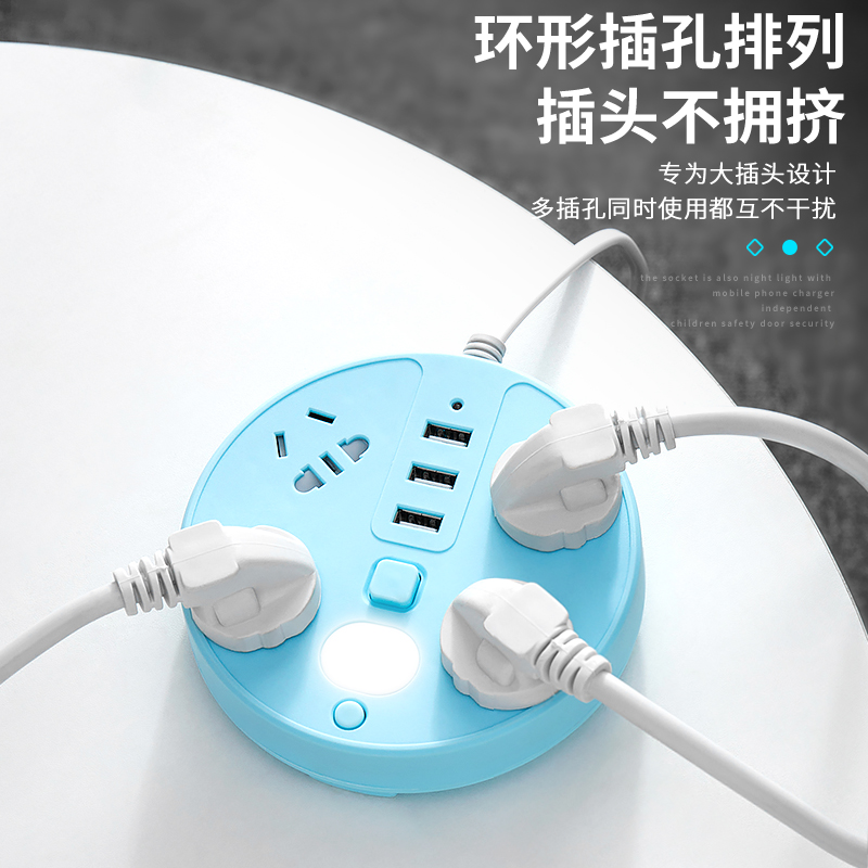 Multi - use socket panel porous round pink universal conversion plug - plug plug - plug - plug student dorm for 1 m