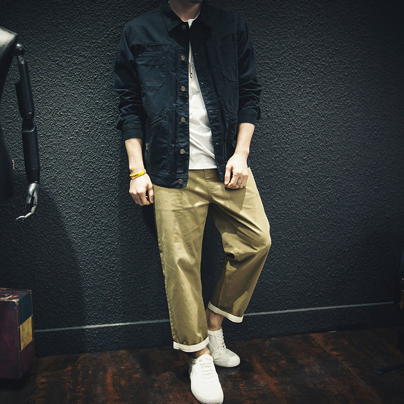2021 spring and autumn casual tooling jacket men loose tide brand pure cotton large size fat trend boys jacket tide autumn