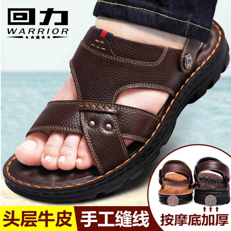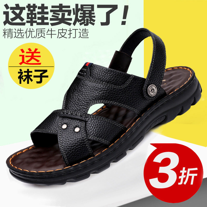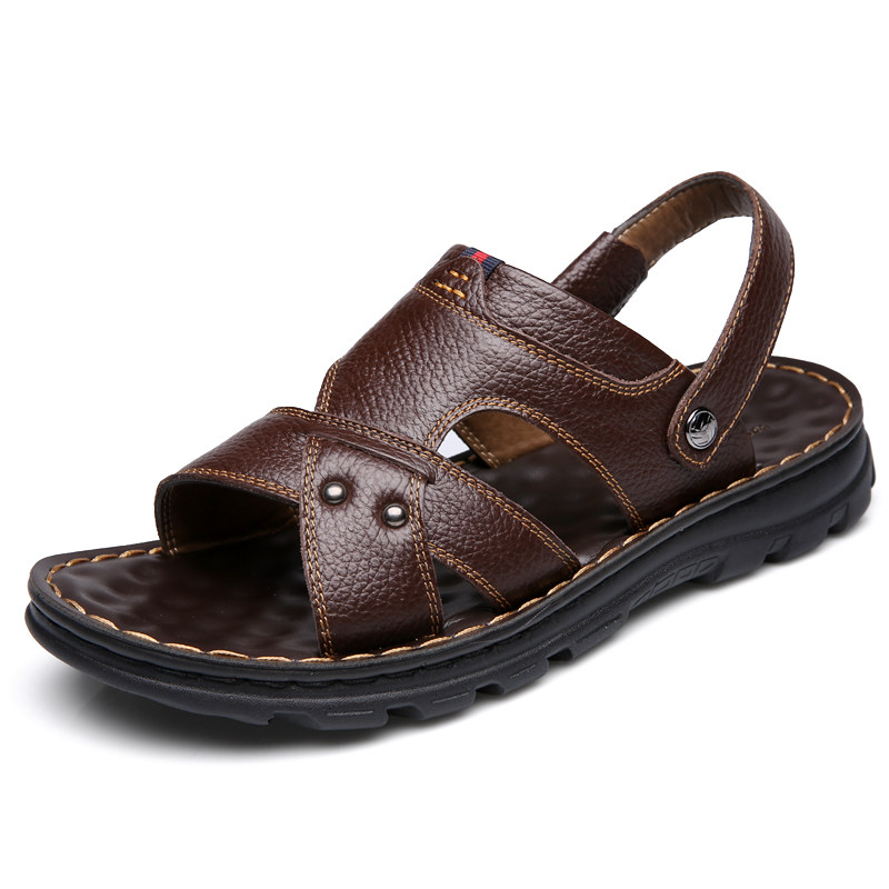The new leather sandals in 2020 summer shoes and skin anti - slip dual - use daddy slippers shoes