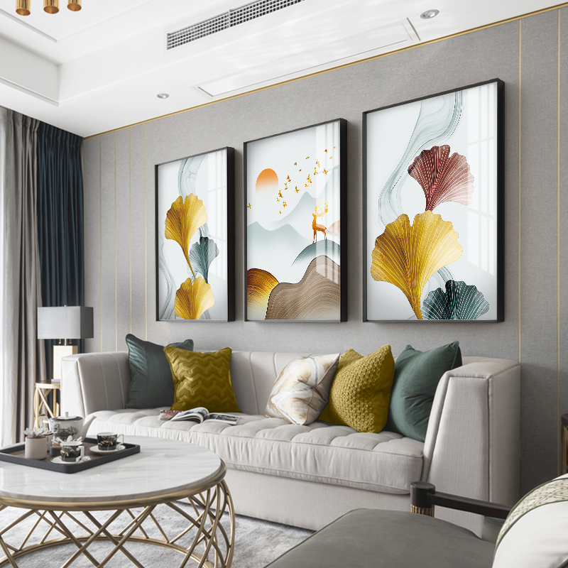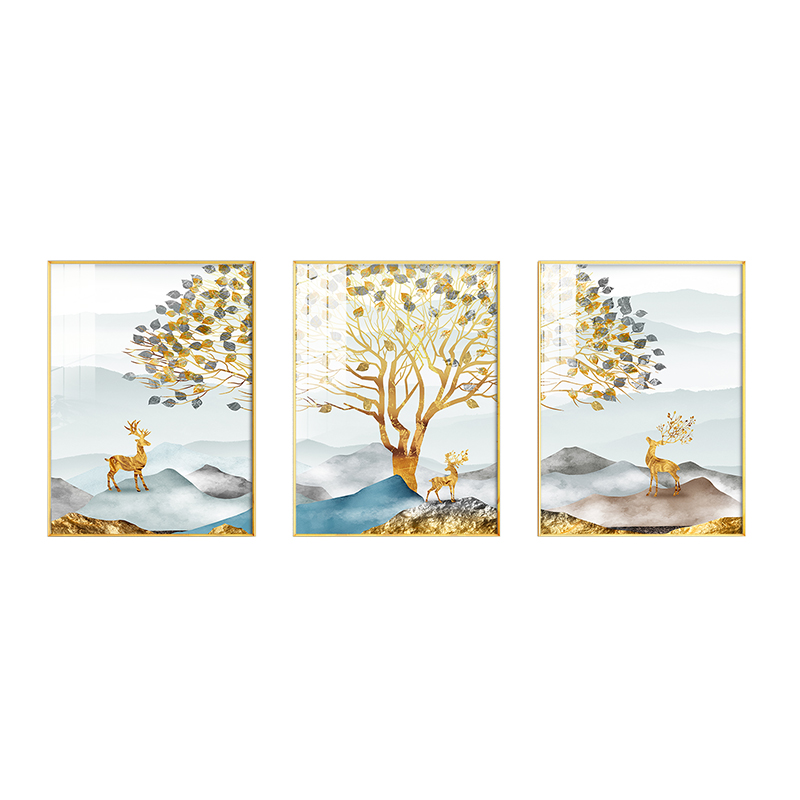 Hair Fortune Deer Decoration Painting Sofa Background Wall Hanging Painting Modern Light Lavish Hanging Drawing Living Room Wall Painting feng shui triptych