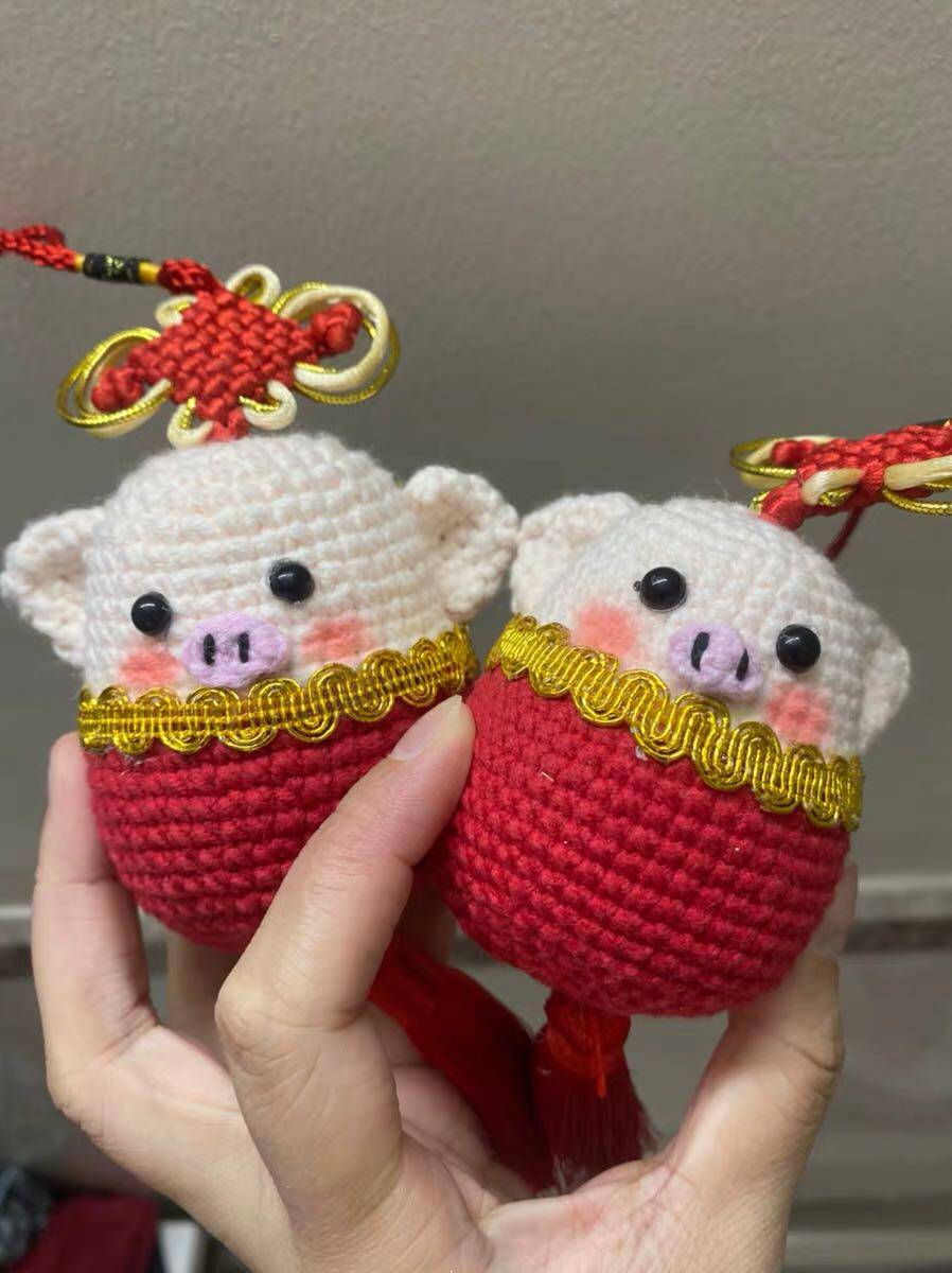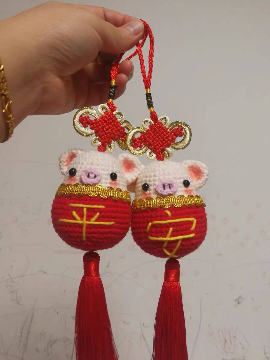 Handmade DIY woolen car hanging ornament crochet weave Chinese knot Xiaofu pig cai Douyin the same finished product
