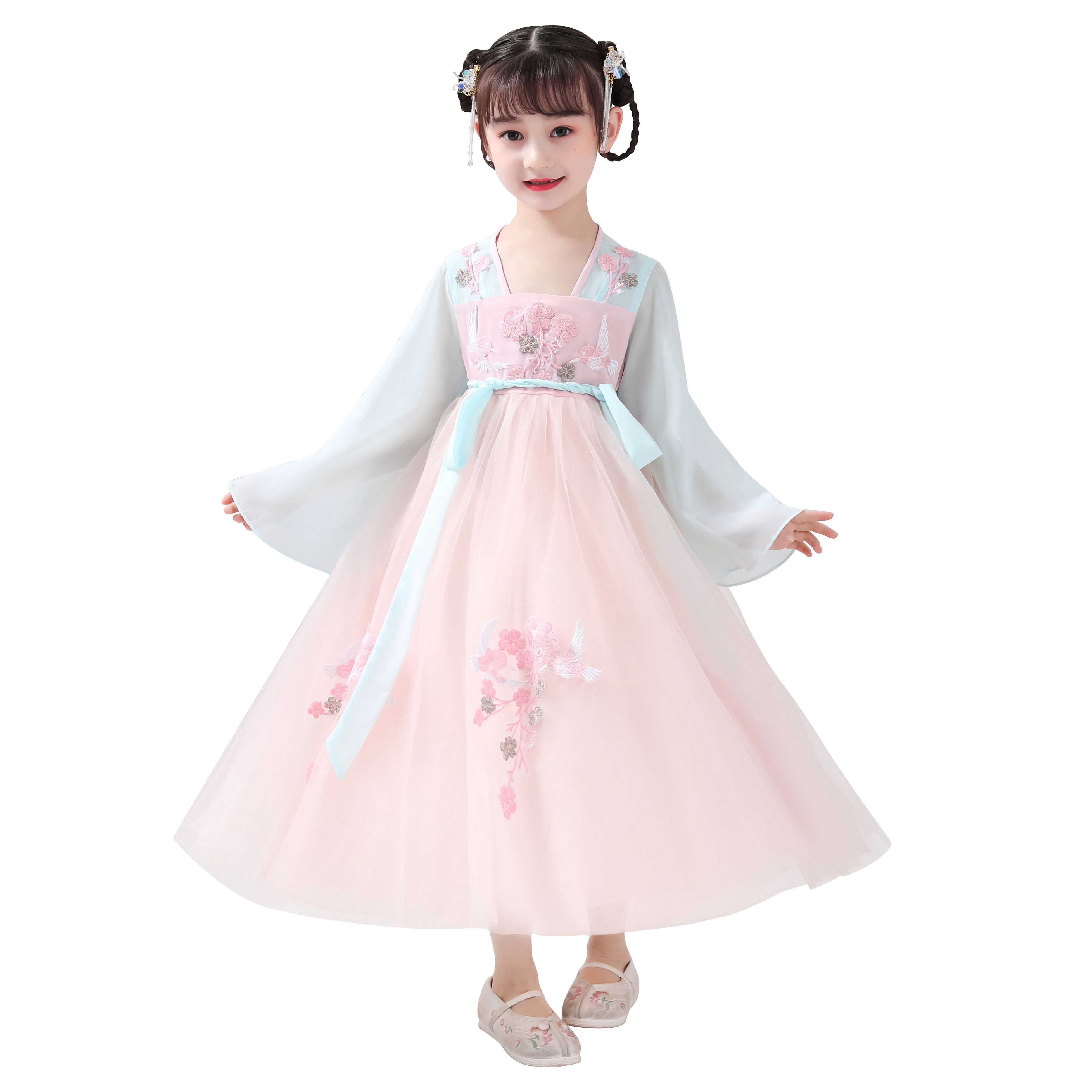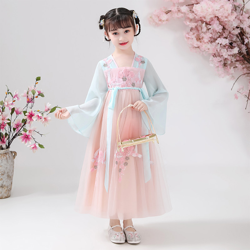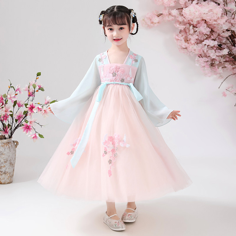 Children's waist-waist Hanfu girls spring dress Chinese style summer dress Tang costume ancient style super immortal dress fluttering skirt ancient costume