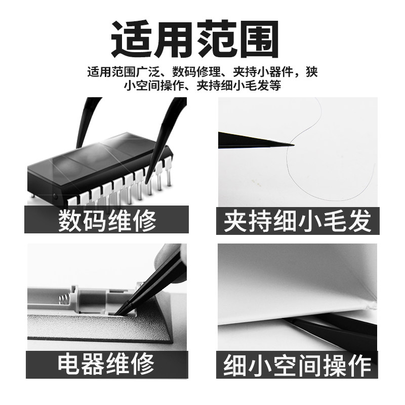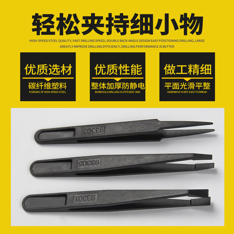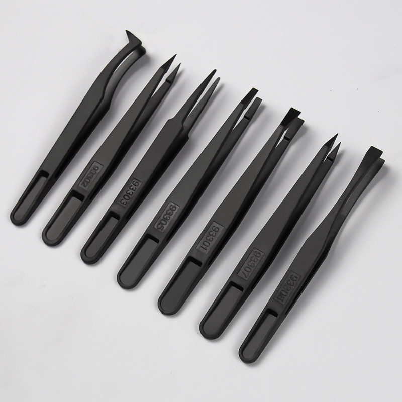 20 packs of anti-static plastic tweezers black pointed flat head elbow round head wide mouth electronics factory special tool maintenance
