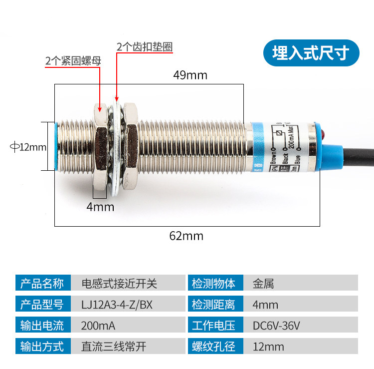 Manufacturers direct sales brand close to switch metal detection sensor limit water resistant oil LJ12A3-4-Z BXNPN