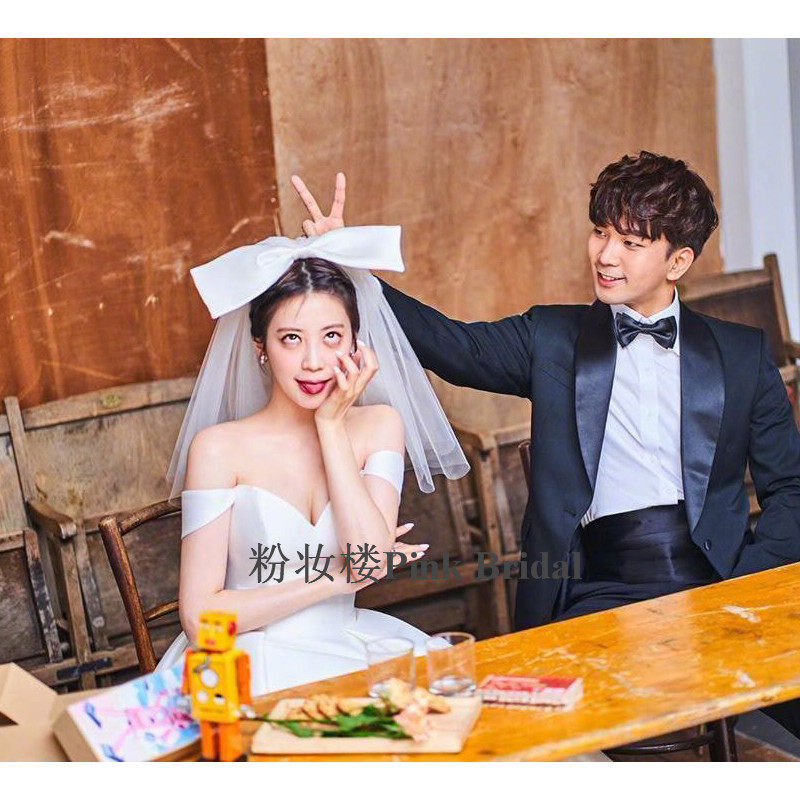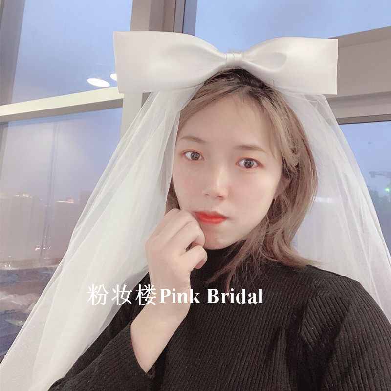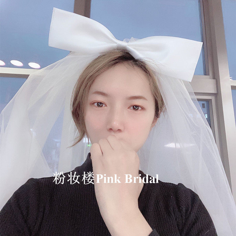 Korean-style big bow super fairy forest net red photo props short paragraph fluffy bride veil travel shooting style hard yarn