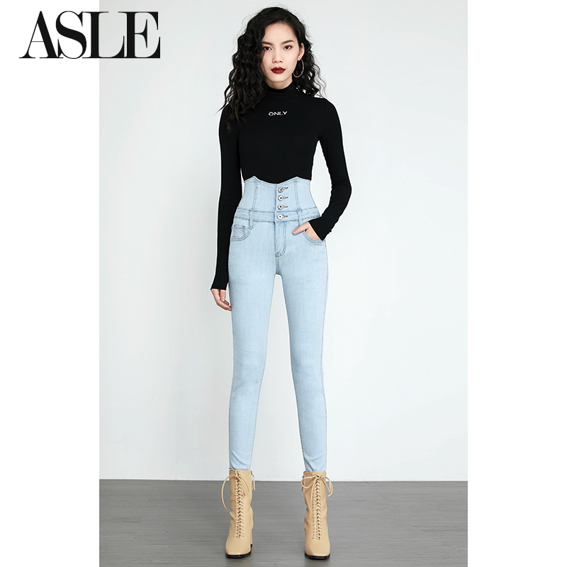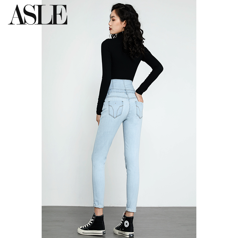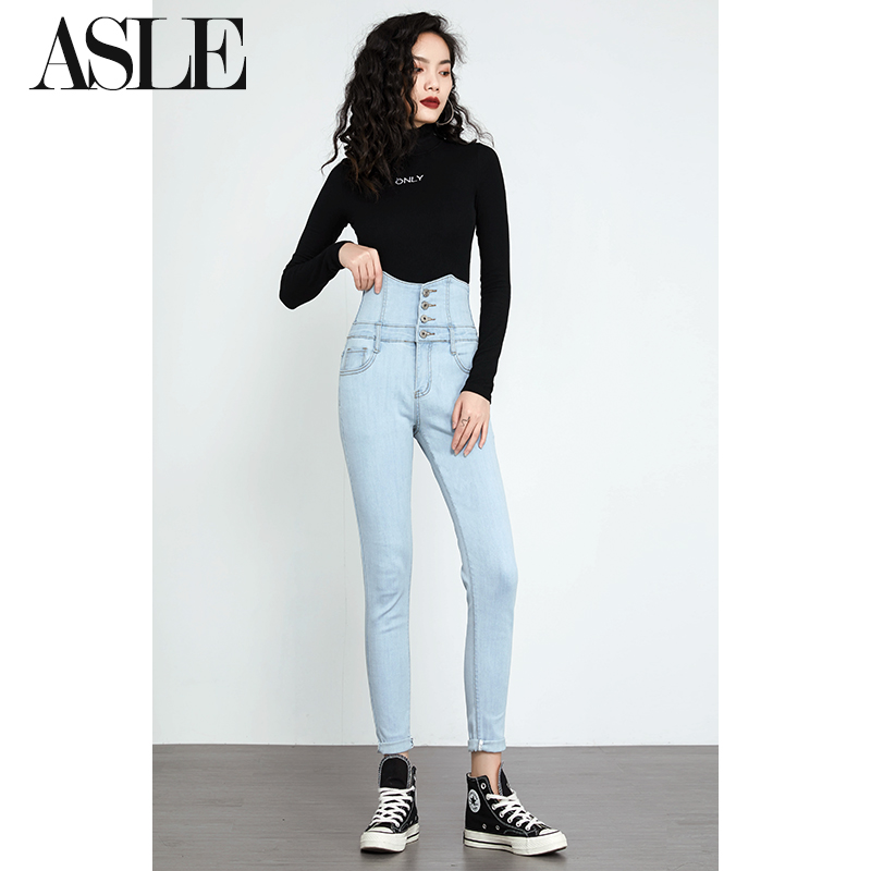 Ultra-high-waist light-coloured jeans female smoke pipe pants 2022 spring and autumn new Korean version elastic display with high and thin trousers damp