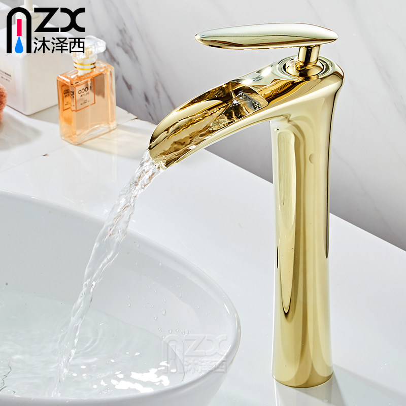 Falls Black Faucet All Copper Basin Basin Cosmetic Room Northern Europe Stand on the basin gold faucet Falls