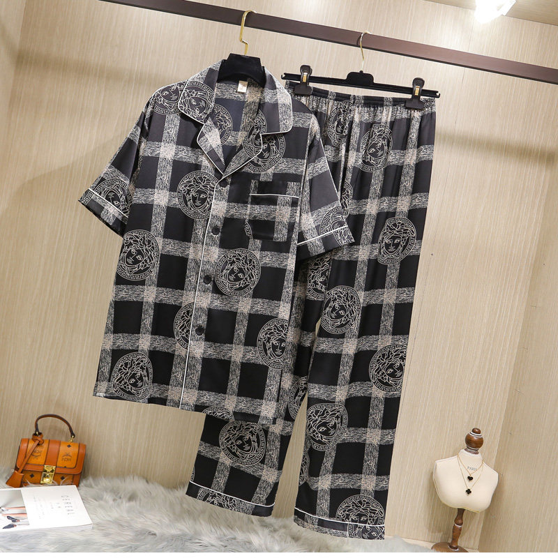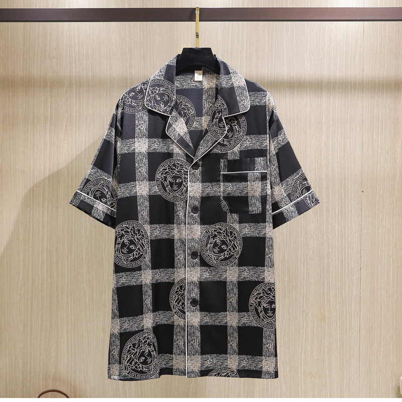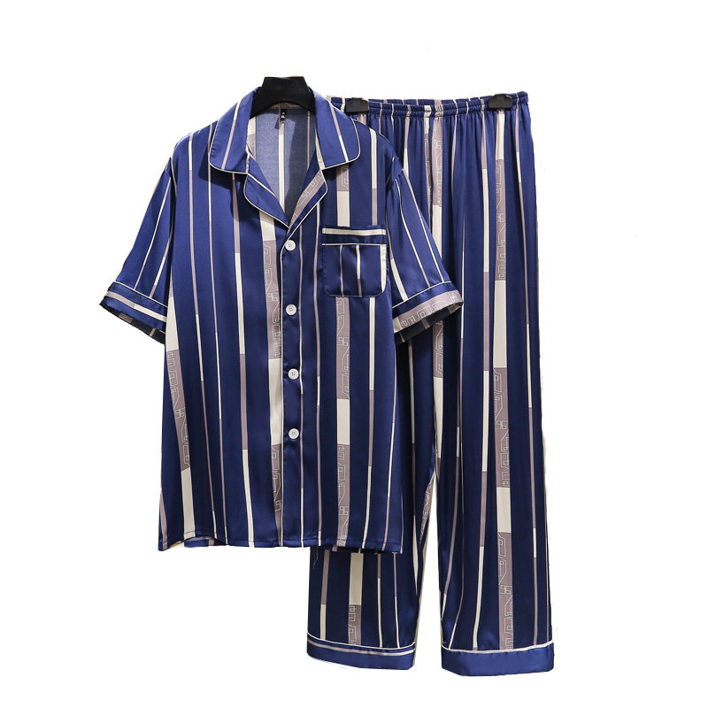 Pajamas Men's Ice Silk Thin Short Sleeve Cardigan Jacket Lapel Simple Fashion Silk Summer Men's Homewear Summer Suit