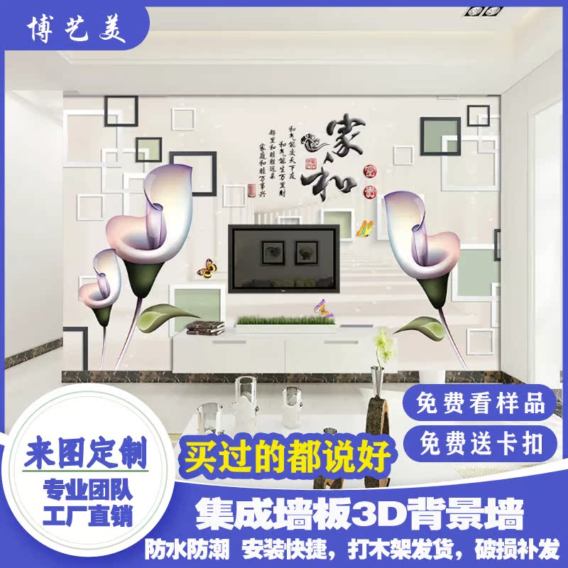 Integrated wall panel Bamboo Wood Fiber Custom 3D5D Living-room TV Genguan Sofa Background Wall Decoration Quick Fit Wall Painting