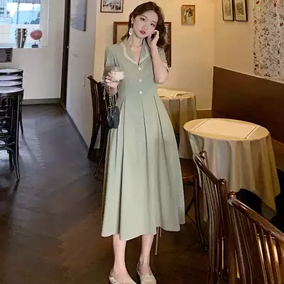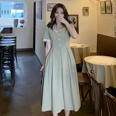Large size women's French retro dress micro fat mm age age slim dress Belly Belly cover waist Platycodon grandiflorum first love long dress summer