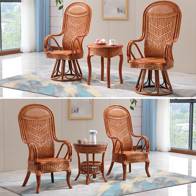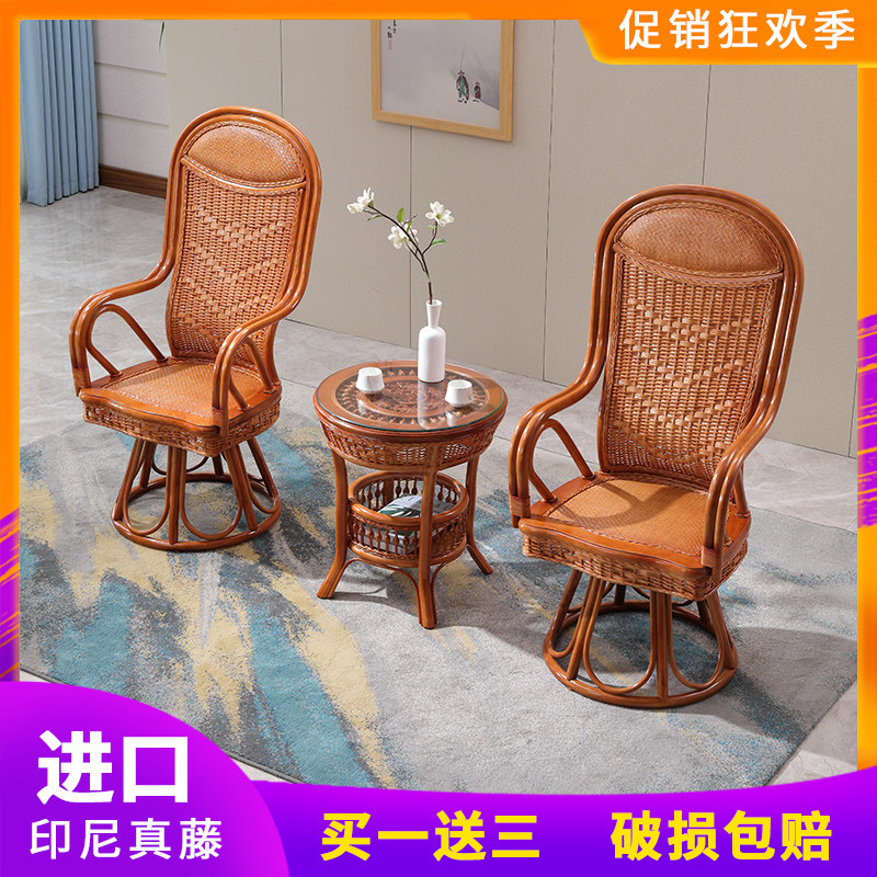 Rattan chair three-piece set leisure rattan chair office chair backrest chair tea house chair outdoor balcony rattan real rattan chair single piece