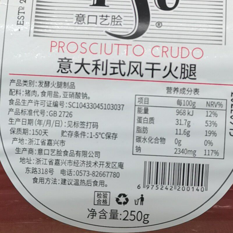 ISU Italian style air-dried ham slices 250g air-dried fermented raw Parma ham slices ready to eat cold dish
