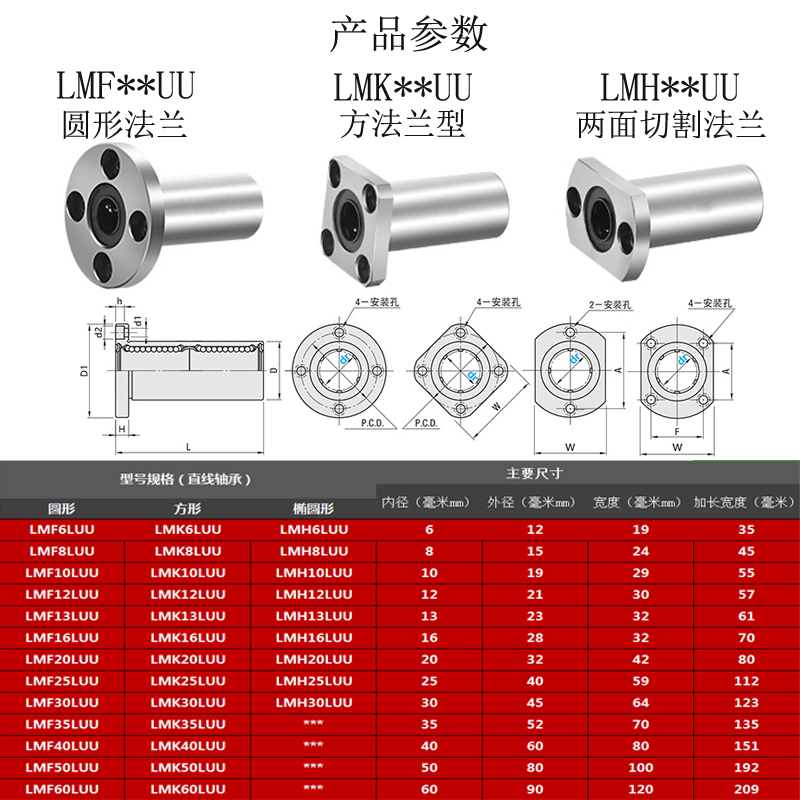 Circular flange (LMF6UU) round flange (LMF8UU) round flange (LMF10UU) round flange (LMF12UU) round flange (LMF12UU)