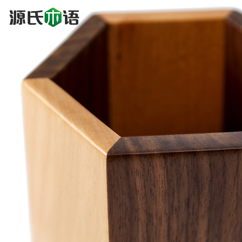 Genji wood language hexagonal solid wood rotating pen holder storage box creative simple atmosphere stationery desktop desk