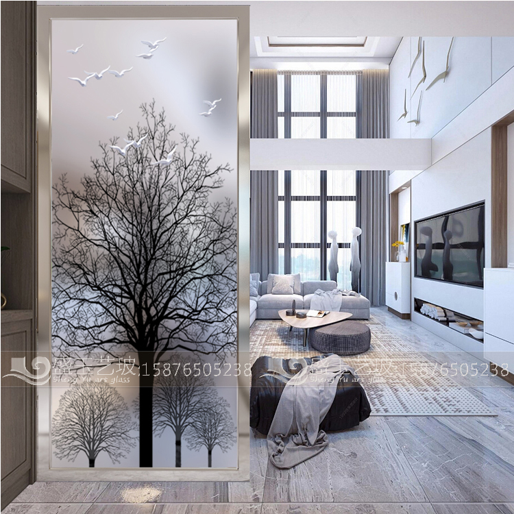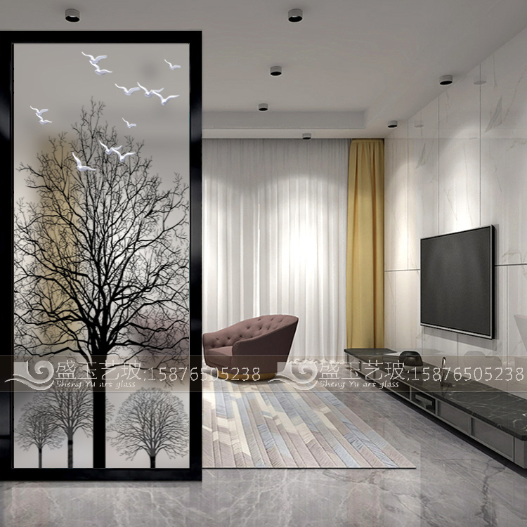 Modern minimalist art glass living room screen partition decoration Kitchen entrance cabinet Light luxury small apartment customization