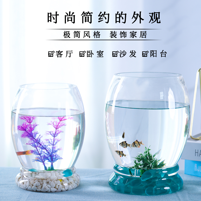 Creative Desktop Fish Tank Eco Round Glass Gold Fish Tank Mini-sized Scenery Home Aquarium